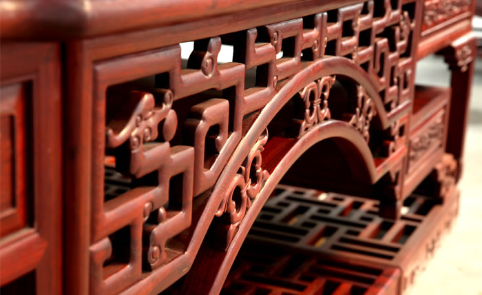 流程三雕刻工序 為了讓紅木家具看上去更美觀,在木工工序完成之后一般都會(huì)用一些或簡(jiǎn)單或復(fù)雜的雕花來(lái)進(jìn)行裝飾,也就是行業(yè)中所說(shuō)的雕刻紋飾。雕刻紋飾必須在“認(rèn)榫”完成后進(jìn)行,因?yàn)椤罢J(rèn)榫”時(shí)需要修整,如果先做好雕花再開(kāi)榫,紋理很難保證雕花部件都在同一平面上,而此時(shí)為了保證雕花...
